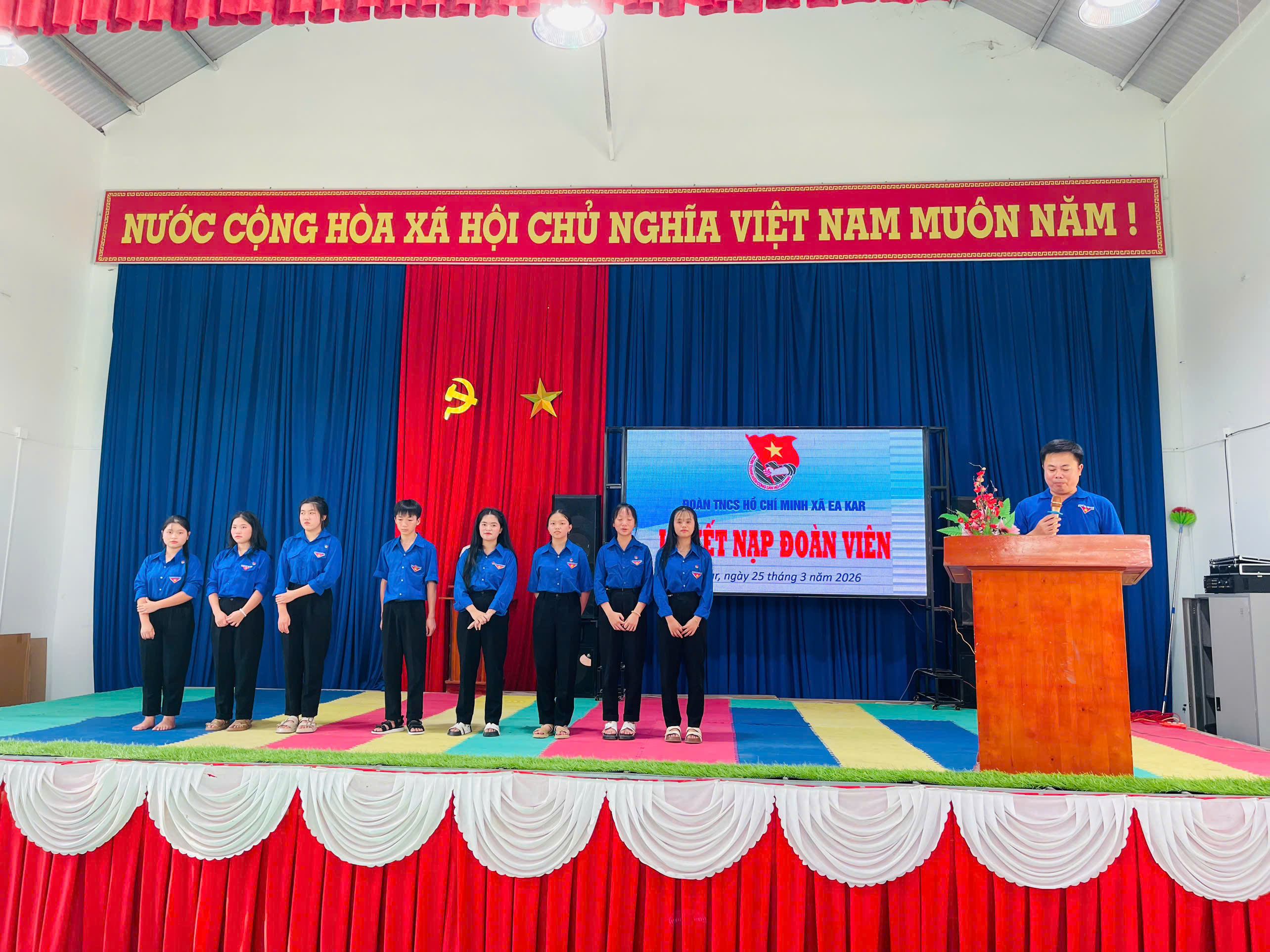 Điểm nhấn đặc biệt của chương trình là Lễ kết nạp Đoàn viên mới dành cho các học sinh lớp 9 ưu tú. Trong không khí trang nghiêm, các em đã vinh dự được đứng vào hàng ngũ của Đoàn TNCS Hồ Chí Minh – đánh dấu bước trưởng thành quan trọng trên con đường học tập và rèn luyện. Đây không chỉ là niềm tự hào của cá nhân các em mà còn là động lực để tiếp tục phấn đấu, cống hiến và lan tỏa những giá trị tốt đẹp.