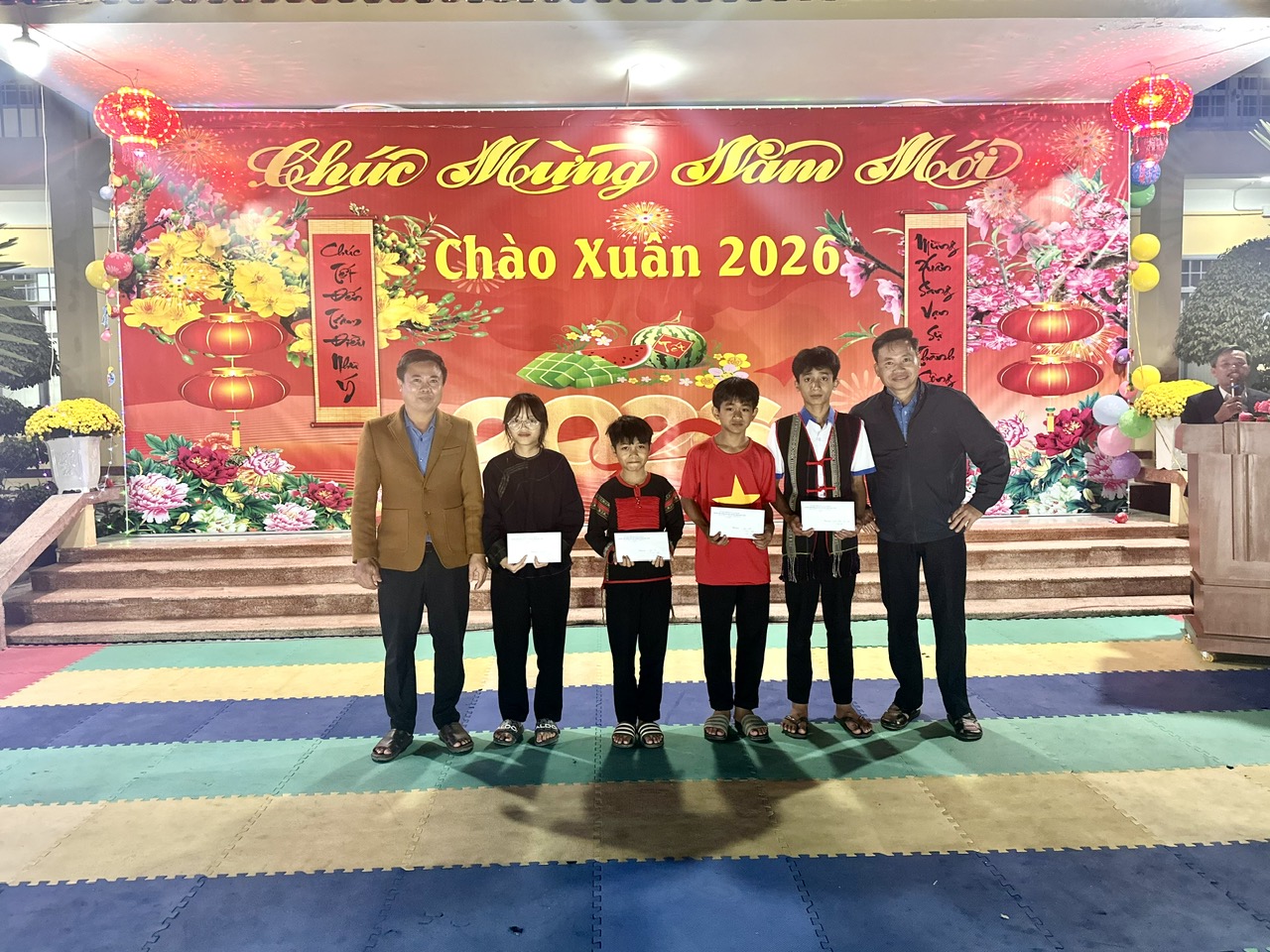 Nhà trường và liên đội đã trao tặng những phần quà ý nghĩa cho các em học sinh có hoàn cảnh khó khăn học giỏi vượt khó. Những món quà chứa đựng tình cảm, sự sẻ chia từ thầy cô và phụ huynh, giúp các em có một cái Tết ấm áp, đủ đầy hơn.