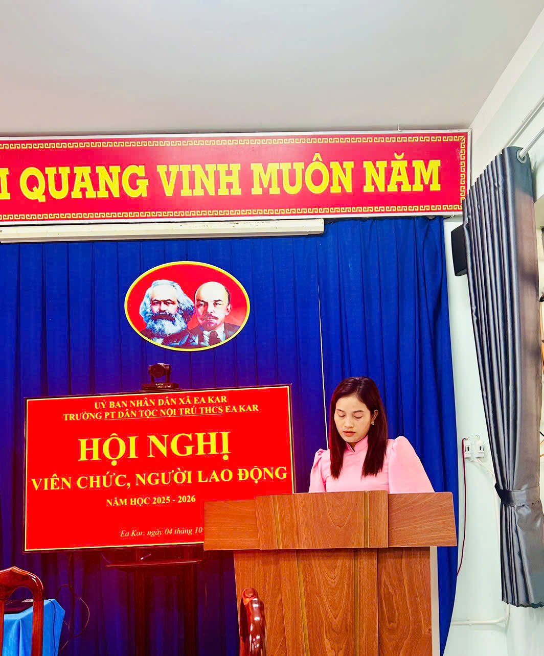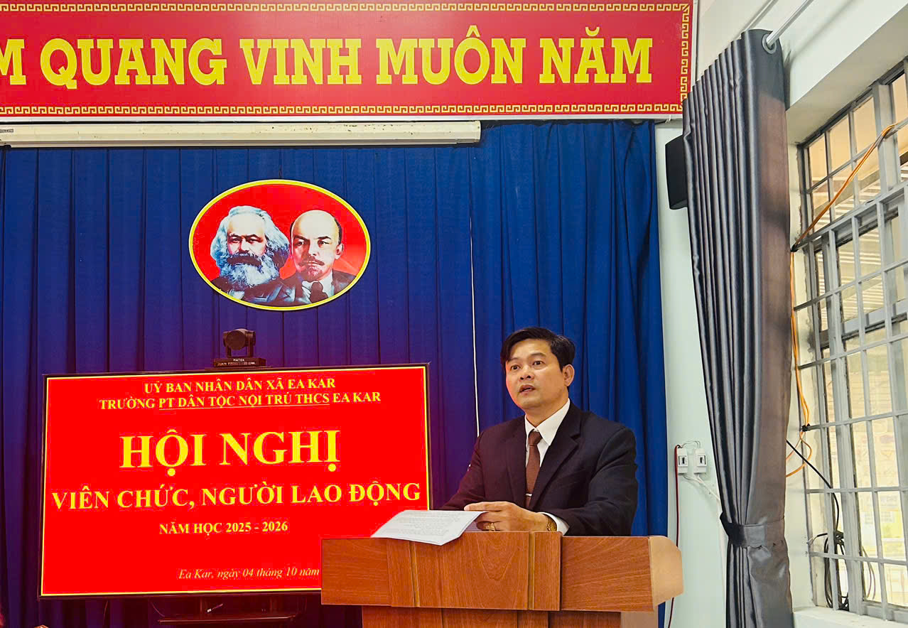 Trong không khí thi đua sôi nổi chào mừng năm học mới, chiều ngày 30 tháng 9 năm 2025, trường PTDT Nội Trú THCS Ea Kar đã long trọng tổ chức Hội nghị viên chức – người lao động năm học 2025–2026.